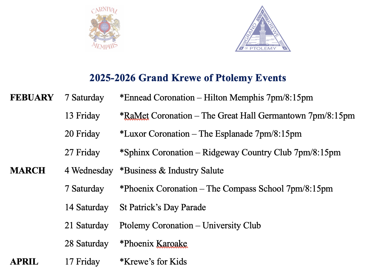 The mission of Ptolemy is to serve as a vehicle for a diverse range of people to enjoy Carnival Memphis and thereby uphold and perpetuate its traditions. Ptolemy strives to present an array of festive events during Carnival week and present community service opportunities throughout the year. Since our inception in 2000, we've raised the bar on fun, as well as over $4.5 million for local children's charities through the Carnival Memphis Children’s Charity Initiative!